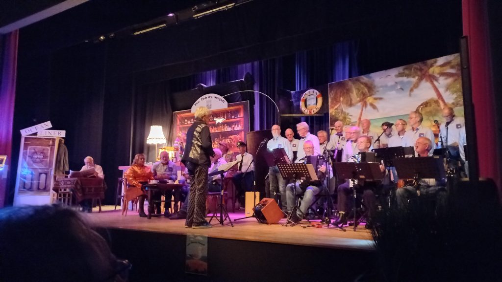 De grote zaal van It Maskelyn in Hurdegaryp puilde zaterdagavond uit bij de tweede shantyrette tijdens het jubileumconcert van Aan Lager Wal. Het publiek genoot met volle teugen van de zang en de spelers die eveneens uit leden van Aan lager Wal bestond. Ook het decor is door de leden vervaardigd.