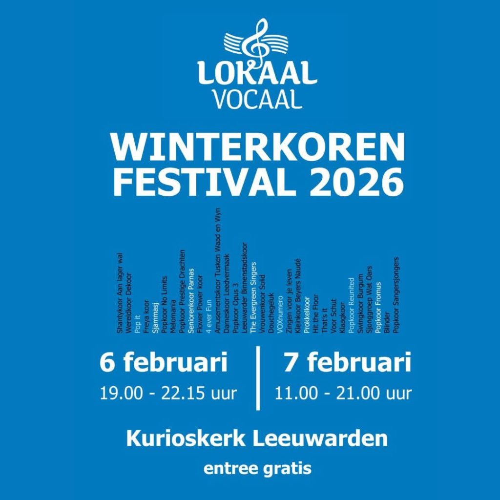 Jazeker ook dit jaar zijn we er weer bij. in de Kurioskerk. Wij trappen het festival af op vrijdagavond om 19.00 uur met een optreden van twintig minuten. Verspreid over bedie dagen treden er in totaal 32 koren op met meer dan 700 zangers uit Friesland met een mix aan muziekstijlen. Het winterkorenfestival wordt voor de zestiende keer gehouden.